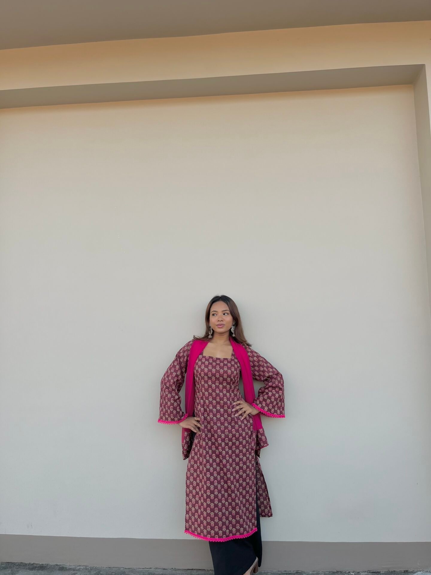 simple, soulful, and beautifully desi, AFSANA is a pure cotton kurti that wraps you in comfort and quiet elegance. with a soft square neckline and charming hand-printed motifs, she carries the ease of everyday wear with a hint of festive flair. the dainty lace borders add that graceful touch of nostalgia .