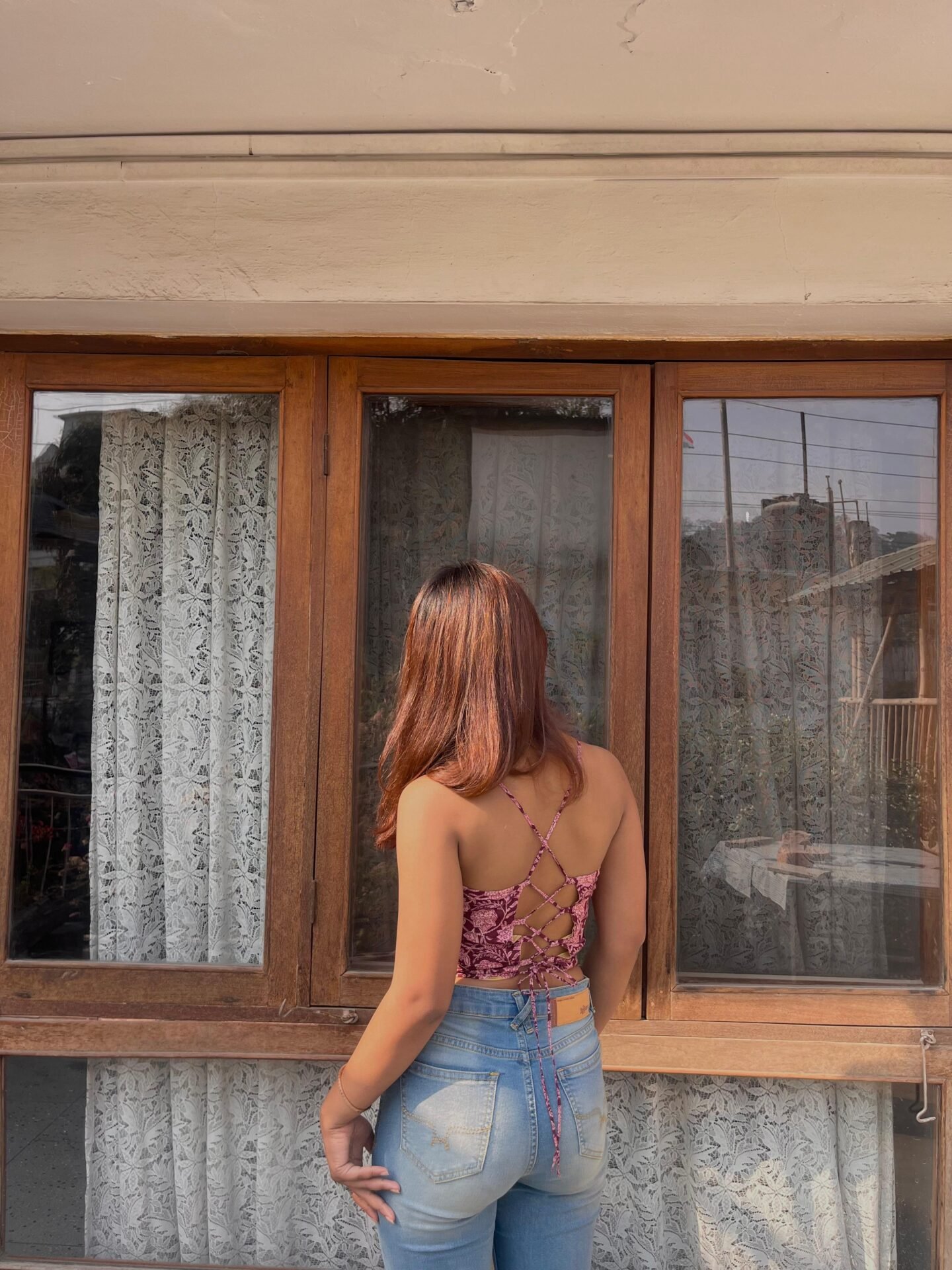 •Backless design with crisscross adjustable tie-up.